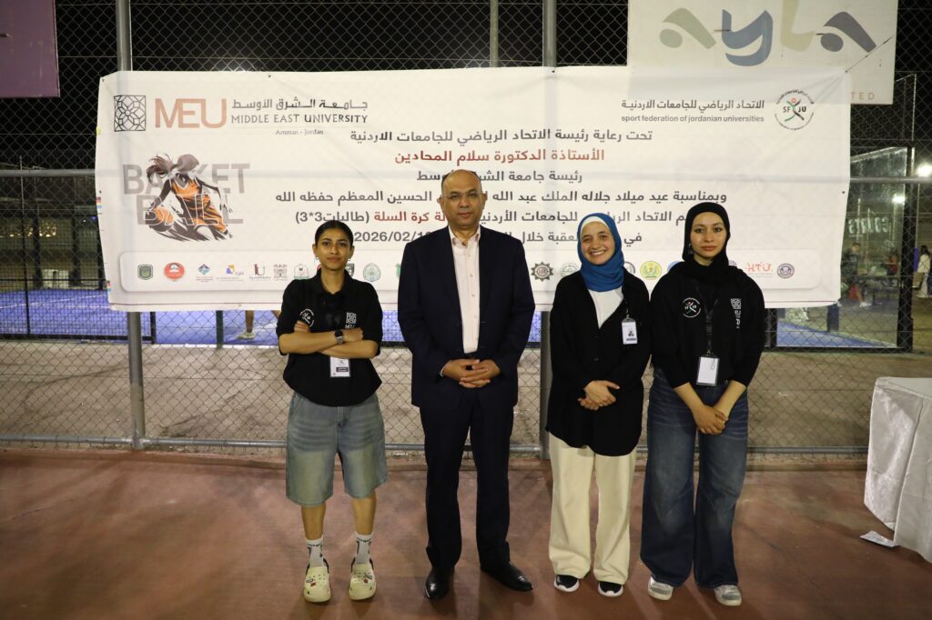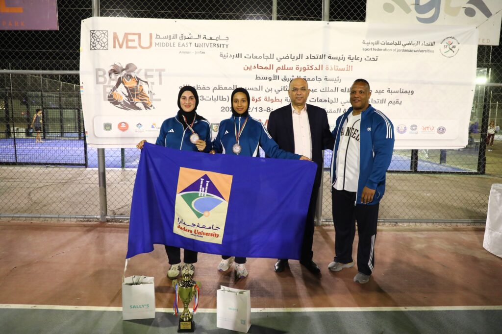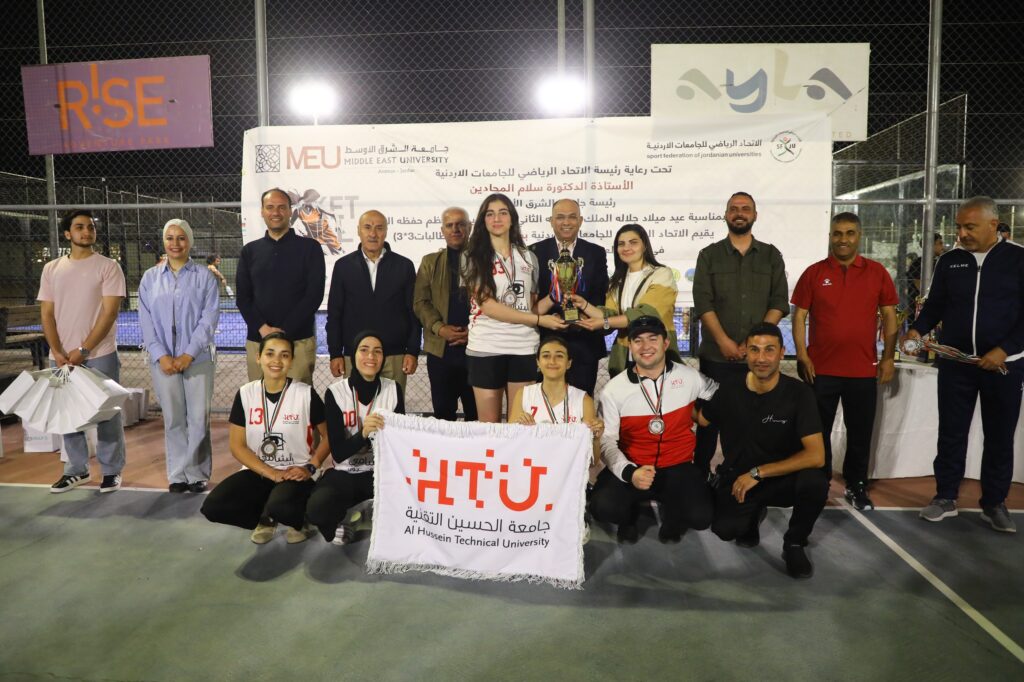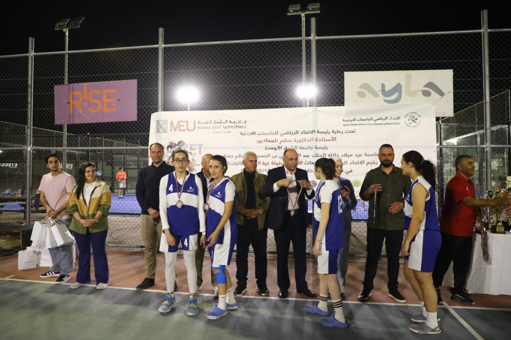 حيث قام أمين سر الاتحاد الرياضي للجامعات الأردنية، عميد شؤون الطلبة في جامعة الشرق الأوسط، الدكتور حازم النسور، بتسليم الكؤوس والميداليات للفرق الحاصلة على المراكز الثلاثة الأولى، مشيدًا بالمستوى الفني الذي أظهرته الفرق المشاركة.