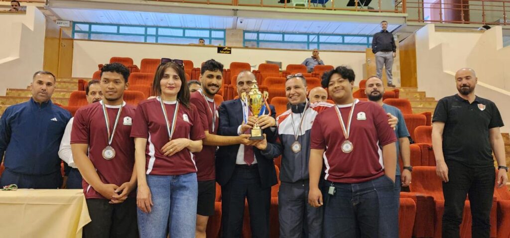 وقد أُقيم حفل التتويج بحضور عميد شؤون الطلبة في جامعة العلوم والتكنولوجيا الأستاذ الدكتور ماجد المساعدة، وعميد شؤون الطلبة في جامعة إربد الأهلية الأستاذ الدكتور فايز العتوم، حيث قاما بتتويج الفائزين وتسليمهم الميداليات والكؤوس في أجواء احتفالية مميزة عكست روح الإنجاز والتميز.